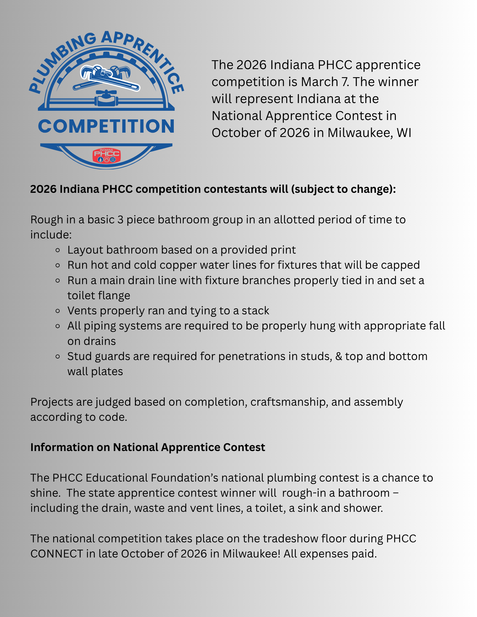 2026 Indiana PHCC Apprentice Competition